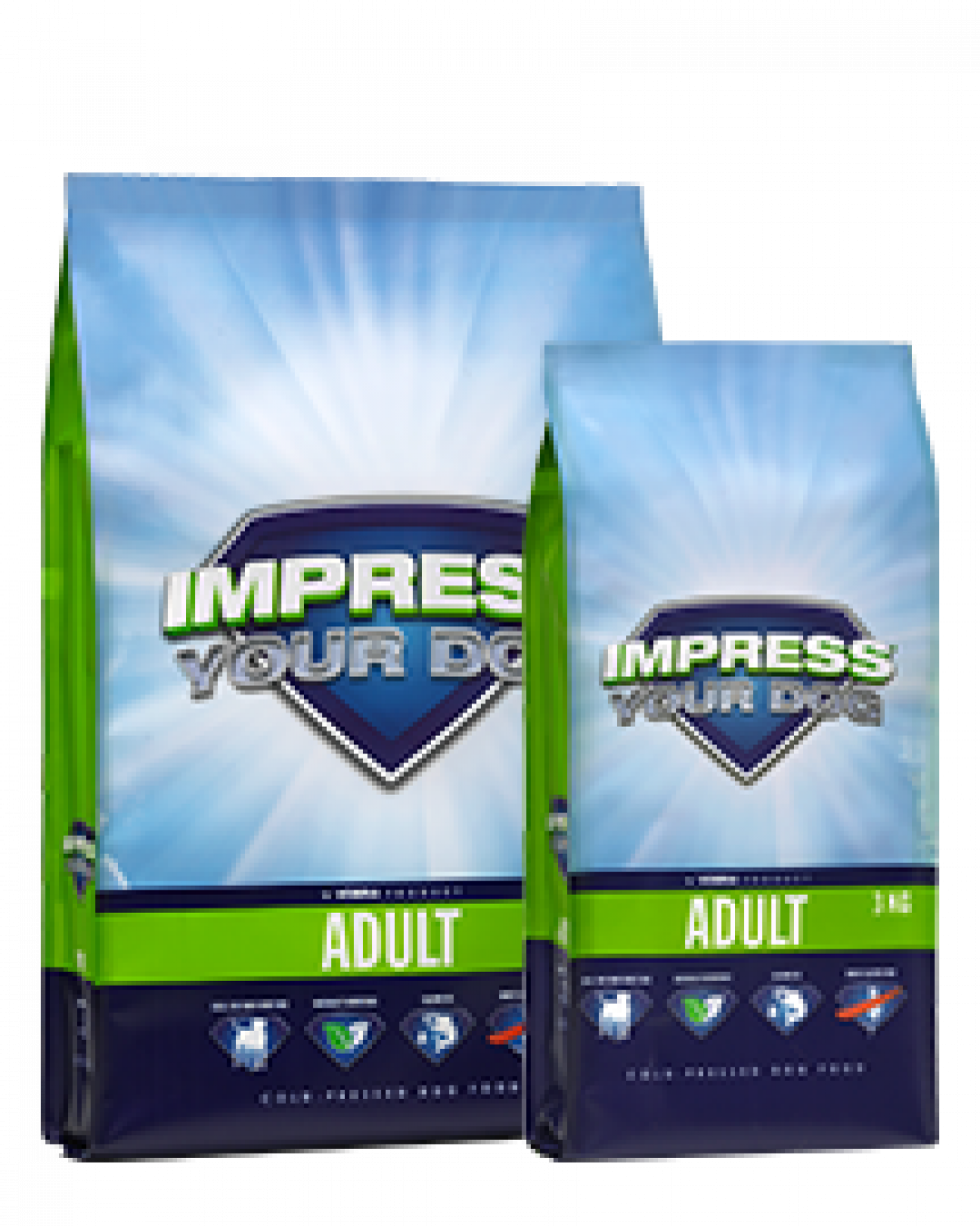 Impress Your Dog adultbrokken zijn verkrijgbaar in 3 kg en 12,5 kg. Klik hier en vind eenvoudig je dichtstbijzijnde Impress Your Dog winkel.