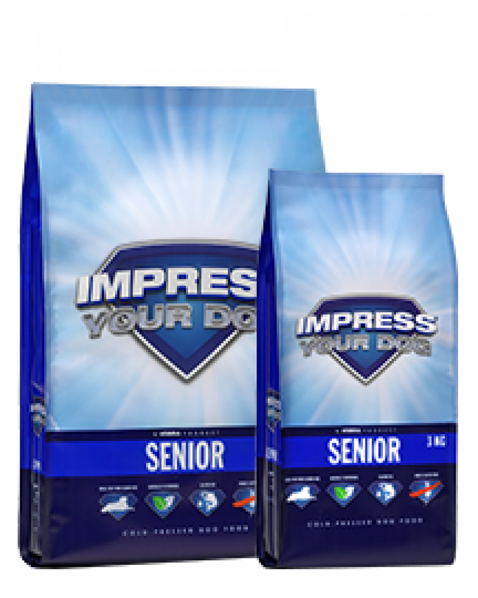 Impress Your Dog Senior is een geperst en volledig diervoeder voor de oudere hond. De brokken dragen bij aan een sterke en gezonde basis voor jouw senior hond. Het voer biedt de optimale samenstelling voor een ouder wordende hond, zoals een lager eiwit-, vet- en fosforgehalte en het bevat extra vitamine E. Deze aanpassingen in het voer zijn erg belangrijk, omdat een oudere hond meer moeite heeft om de voedingsstoffen uit de voeding te halen. Met Impress Your Dog senior blijft jouw hond ook in deze levensfase volop genieten.